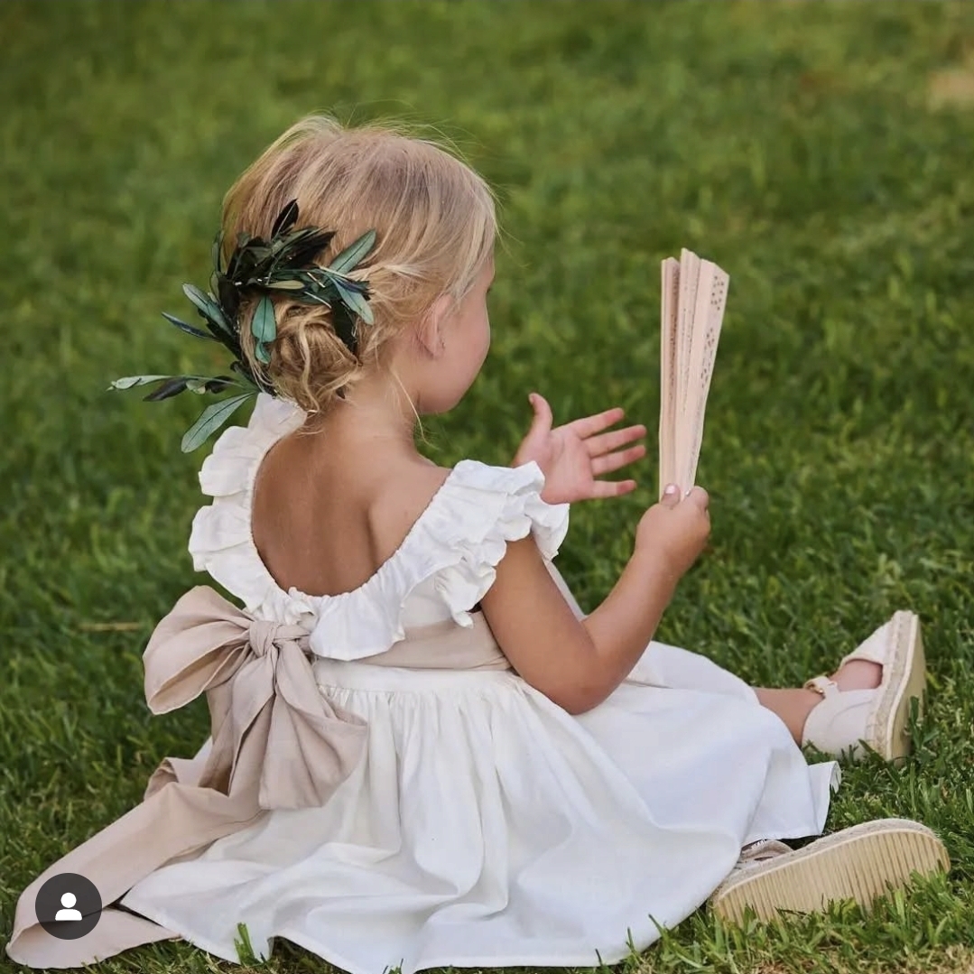 Vestido confeccionado en lino y algodón blanco natural con escote redondo en la espalda.