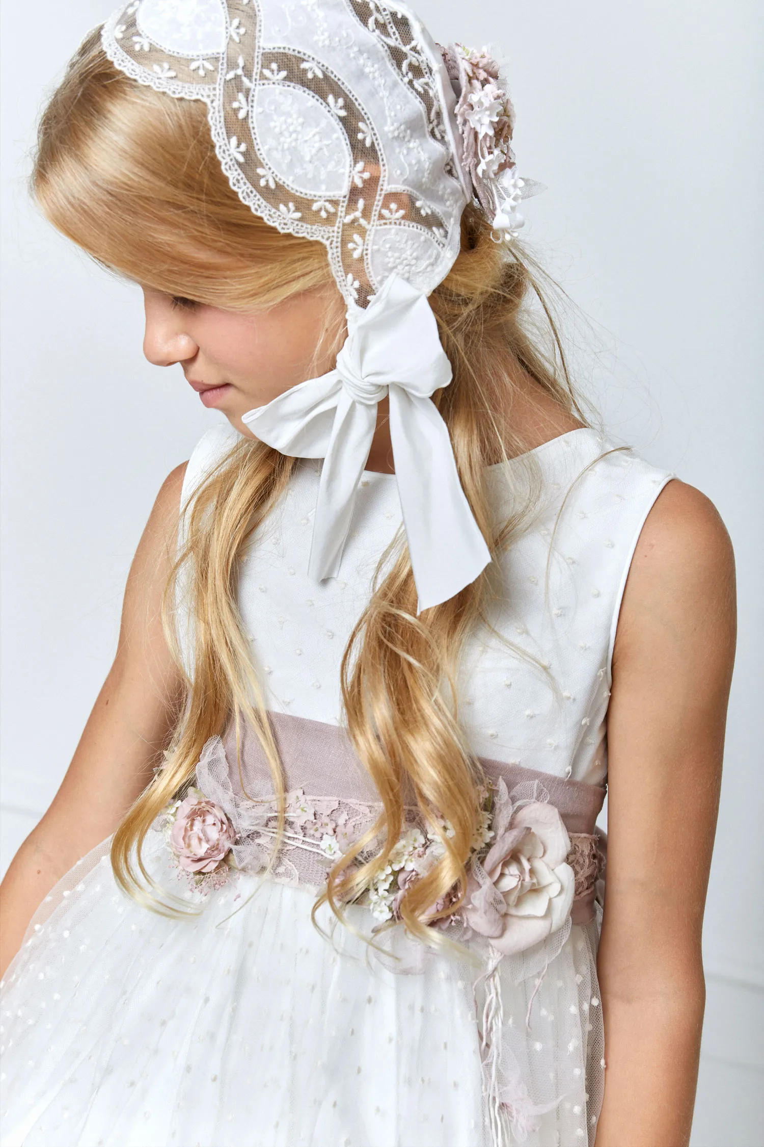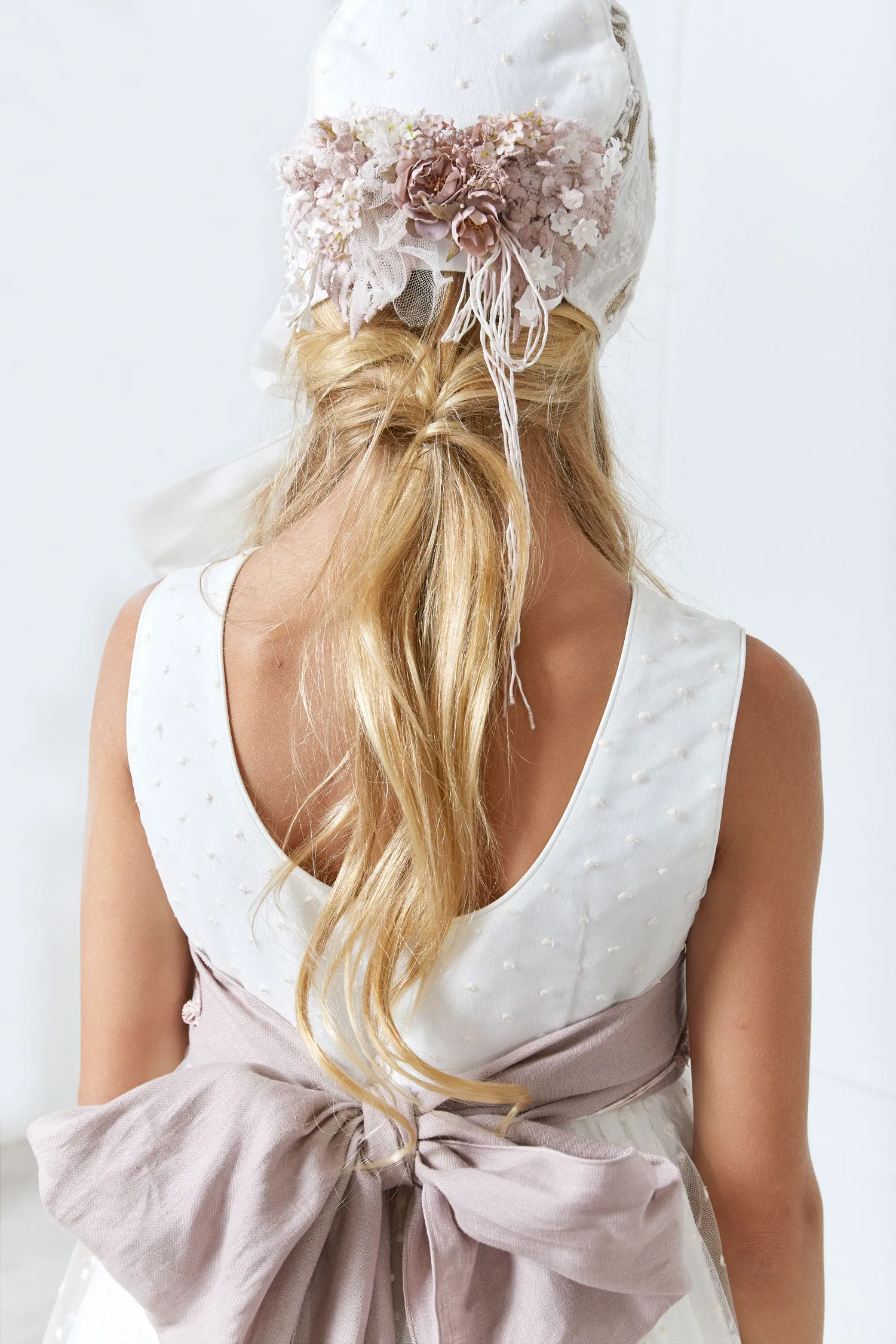 Flores y tocado no incluidos.